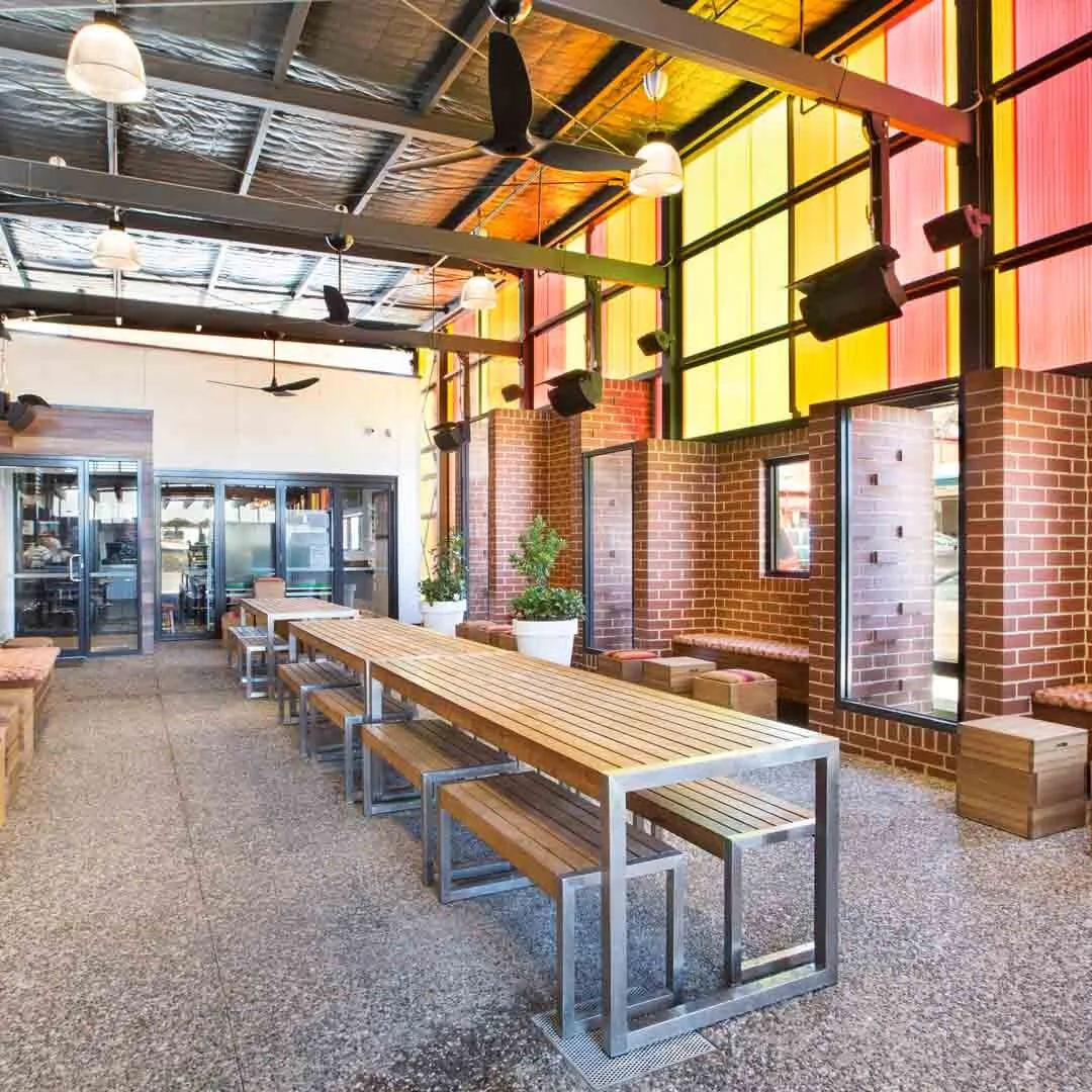 The old front bar at the Somerville Hotel boasts a courtyard complete with heaters, plants and a place to eat. Inside has seen the heritage listed back wall stripped back to its original brick, a wood bar top, and an industrial feel, making this bar modern, airy and inviting. Whether you’re coming for a drink after work, a family dinner or hosting a special event, the Somerville is the place to be.